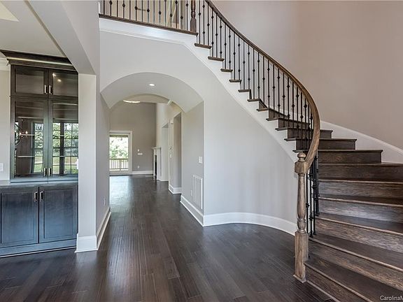 Full brick w/ large front porch & 4 car garage. Tons of windows, curved staircase off foyer. Custom built-ins & glass doors in lg DR. Barrel archway leads to dramatic kitchen’s stacked cabinets & large morning rm, 16’ sliding doors to covered porch. Morning rm includes Gas log FP & Built-in cabinets w/ wine frig & great countertop space. Private guest ste on main floor. 2nd floor offers spacious master ste w/ freestanding tub in master bath. Great home site w/ wooded view off rear porch.