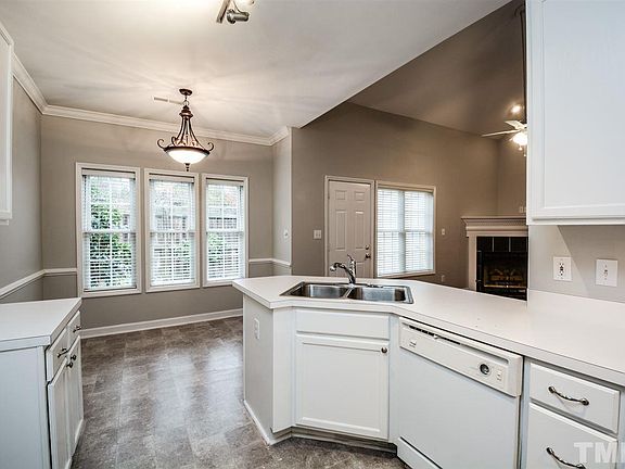 This Wake Forest two-story corner home offers plenty of natural light, a loft, and a fireplace.