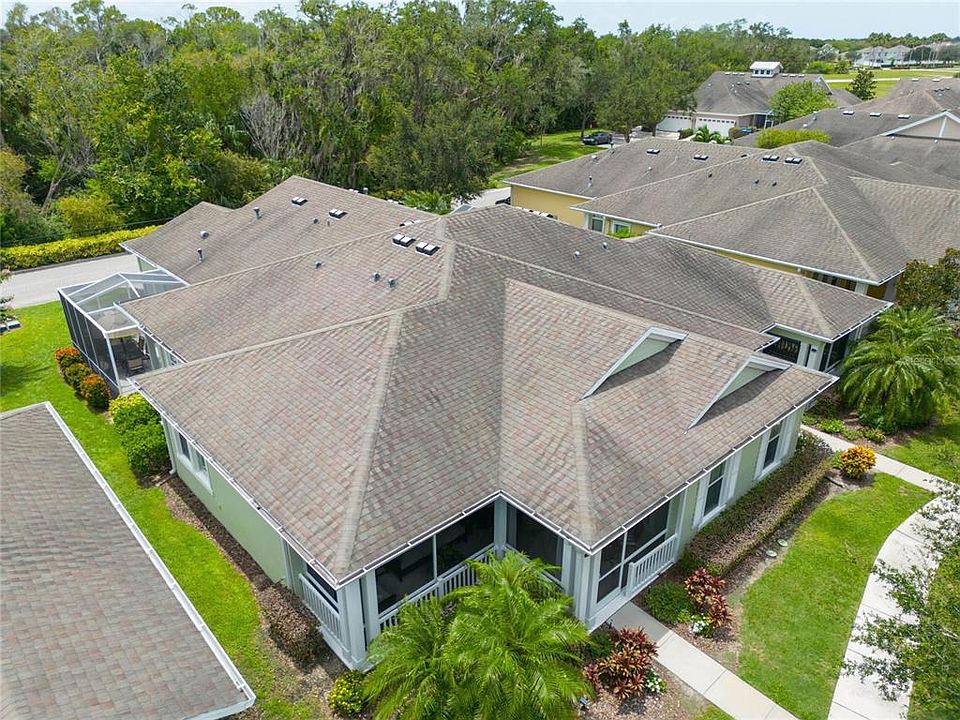 Enjoy the Florida lifestyle in the exclusive gated waterfront community of Mirabay. This IMMACULATE and MOVE IN READY 3 bed 2 bath updated MAINTENANCE FREE villa is located in the secluded community of Seacrest. Prime location on a quiet street. This home features two SCREENED IN porches both with ceramic tile flooring and ceiling fans to enjoy the outdoors. The front porch faces a park like courtyard common area, the rear is backed by a conservation area with a view of the pond. Can have morning coffee on the front porch with after dinner drinks on the back porch. Attached two car garage with convenient direct entry to the villa, no need to walk through an outside porch to enter home. The rear entry door is a beautiful custom glass hurricane rated door. The kitchen features new granite counter tops along with a huge center island, plentiful cabinets, stainless steel appliances along with a walk in pantry. The large living room features three windows overlooking the front porch for maximum sunlight. Home has 10' ceilings throughout with ceramic tile in all areas except the bedrooms. Crown molding in all rooms except guest bedrooms. Ceiling fans in living room and bedrooms. The spacious master bedroom is in the front of the home, features en-suite bath, walk in closet and a sitting area. Master bath has dual sinks, separate shower and water closet. Spacious laundry room with sink and cabinets with walk through to garage. Laundry room also features large walk in closet The split floor plan has two guest bedrooms and a bath located in the rear of the villa. Well maintained home currently covered by Liberty Home Guard warranty. A/C coil replaced in 2022. Miabay offers many resort style amenities including clubhouse, community pool, fitness center, spa, basketball, pickleball and tennis. Social events for all ages. Mirabay is conveniently located between Tampa and Sarasota near major highways for easy access to beaches, shopping , restaurants and Tampa International Airport. Why wait, schedule your visit today to enjoy the Florida lifestyle at Mirabay.