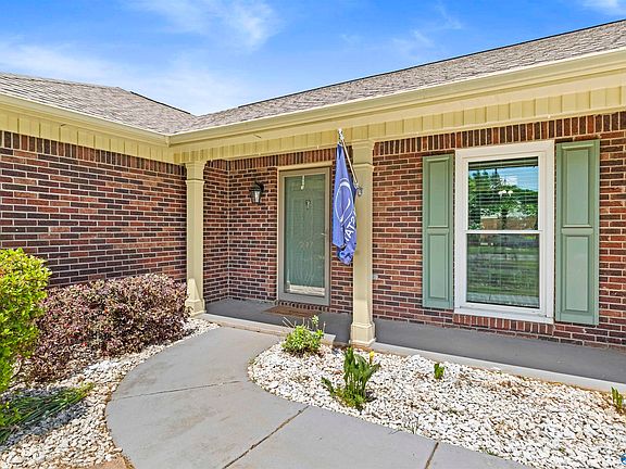 Beautiful one-story brick ranch on nearly half an acre in the lovely, established community of Southern Pines! Features a large family room with vaulted ceilings & a wood-burning fireplace, an eat-in kitchen with new flooring, white cabinets, updated appliances & a bay window looking out into the private backyard. 3 spacious bedrooms, 2 baths, including a primary suite with double vanities, jacuzzi tub, & walk-in closet. No carpet throughout. Enjoy the oversized stamped concrete patio, fire pit, & fully fenced yard. 12x16 insulated shed with electric & ability to add portable heating/cooling, currently being used as a gym. Come see this fantastic home!