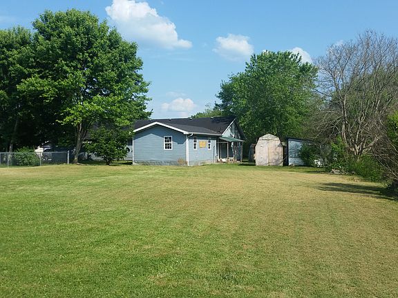 This is a ranch house with light blue siding all around. it has four bedrooms, two of them are off to the side in an addition that was put on the house. It has a formal dinning room and living room. It also has a family in the back of the house. There is a laundry room, with a half bath off of this room. The kitchen is a eat in kitchen with built in cabinets. It has a long covered porch on the side of the house. There our three storage buildings on the property. The property has two one car garages with a work shop in the back of one of them. The back of the property is along the north fork of the Kentucky river. The land on the back side of the house can be used for additional housing in the future, it can be used as a separate piece of property. A very good home for a growing family. Kentucky
