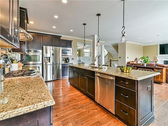 Almost new craftsman style home has the open floor plan that is so popular today. The main floor features beautiful hand scraped hardwood floors, a great room with gas fireplace and wall of windows overlooking 8 acres of wooded greenspace, gourmet kitchen with high end appliances, a walk in pantry, and large island. Custom woodwork-wainscoting and 7" baseboards-are featured in the dining room and first floor den. The sun-lit master bedroom features a lighted trey ceiling, luxury master bath with an oversized spa-like rain shower and large walk-in closet. There are 3 additional bedrooms-one with an ensuite bath, and the other share a jack and jill bath. The walk-out lower level is finished with lots of windows and opens to a newly constructed professionally landscaped flagstone patio with fire pit. The level backyard is fenced-in and looks into private green space.
