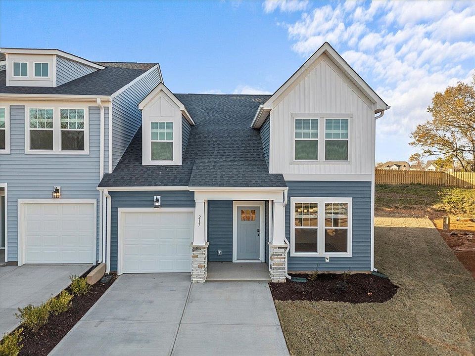 Home is Move in Ready! Welcome to Aspen Ridge! Distinguished homes in Lyman, SC. The only luxury townhomes minutes from Downtown Greer. Live effortlessly with easy access to I-85, nearby schools, shops, parks and restaurants. Boasting two beautiful floorplan designs with open concept living and craftsman style exteriors. Both first level and second level primary suites available. Aspen Ridge is zoned for Spartanburg District 5 schools conveniently located a mile from both Lyman Elementary School and D.R. Middle School. Only 4 miles from James F. Byrnes High School. Under 10 miles from I-85, I-26 and Downtown Greer. Ample nearby shopping opportunities including Target, Walmart, Costco, Sam's Club and much more! Enjoy the outdoors being within 5 miles of 2 nearby lakes, multiple parks, and Greer Golf. With convenient living, sought after schools and beautiful floorplans, Aspen Ridge will be a wonderful place to call home. Offering 2,185 square feet of functional living space, the Summit is a thoughtfully crafted home that is sure to meet all your needs. Enter the spacious foyer from your front porch or garage and come into your open concept living area where you can entertain seamlessly between the living room, kitchen and breakfast area. The chef's kitchen is a must see with stunning white cabinetry, dark granite countertops, tiled backsplash, center island with sink for additional prep space and seating, under cabinet lighting and stainless steel appliances including a gas range and refrigerator. The 12’ Cathedral Ceilings makes the living room open and airy and lead out to the covered porch and more private backyard which is perfect for those summer evenings. Retreat to the luxurious main floor Primary Suite, complete with a generous walk in closet and spa like bathroom featuring double vanities and a beautiful tiled shower with built in seat. Adjacent to the foyer is a dining room that would also make a great home office or just extra living space. An additional full bath and laundry room with washer/dryer included complete the main level. Up the Oak staircase there are two large bedrooms, a full bath, and a versatile room that would be a great entertaining space or even another bedroom. Blinds are also included throughout the home. The 1 car garage and double parking pad give a convenient and versatile combination for car storage and parking All our homes feature our Smart Home Technology Package including a video doorbell, keyless entry and touch screen hub. Additionally, our homes are built for efficiency and comfort helping to reduce your energy costs. Our dedicated local warranty team is here for your needs after closing as well. This home is almost ready for you to make your own so come by today for your personal tour and be one of the first to call Aspen Ridge your new home. Builder to provide the first year of HOA Dues.