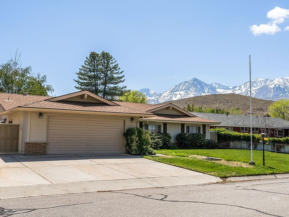 Very desirable Big Pine location at the end of a quiet street with utilities all underground. No power lines to block the beautiful views of the Sierras, Palisade Glacier and the White Mountains. The freshly painted, open floor plan of this home will grab your attention when you enter the living area on the expansive bamboo flooring. Crown moldings and ceiling fans throughout. Large kitchen area with roll out storage. The master bedroom has a walk in closet. Steam shower in the master bath. Porcelain tile floors & tub surround in both upgraded baths. Generous RV or boat parking area with storage shed. Large covered patio for relaxing and BBQs. Mature fruit trees and garden area in back yard. Double garage with lots of built in storage. Garage sink has hot and cold water. Walk to amazing nearby hiking trails along a creek. Fishing, hunting and hot springs within a few miles, and Bishop Golf Course is only 15 minutes away.