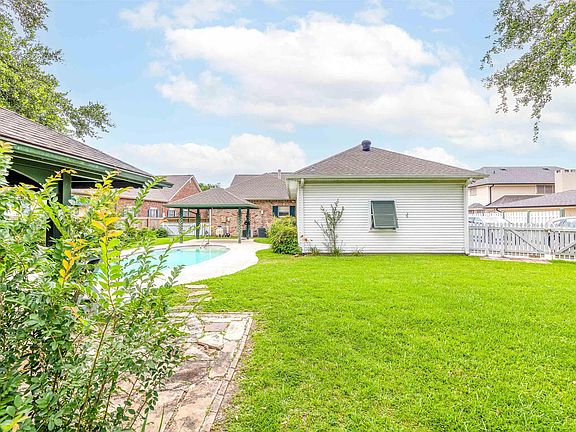 Well loved fabulous home with excellent features is ready for it's new family! The exterior of this home has so much to offer... large lot, powder coated shutters, lazy porches in front and rear of home, POOL, two outdoor entertainment areas, and a half bath to accommodate outdoor activities. The interior of this home is in great condition. Most of the square footage is dedicated to the large kitchen, dine in kitchen, formal dining (office or home school room) and oversized living space. Walk in utility with extra storage, pantry on top of allll of the cabinets. Bedrooms are well sized with fabulous closets. Main suite has it's own exit to enjoy late night swims and an office nook, well sized bathroom, and walk in closet so large you can also store extra decor. Do not miss this home full of potential!