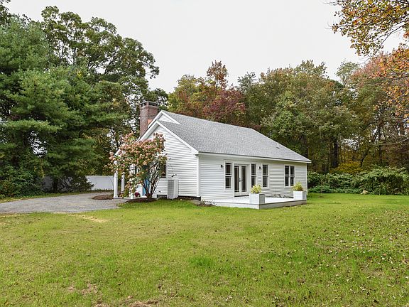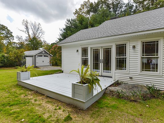 Move right into this totally redesigned and remodeled ranch/cape on a a peaceful, private, parkllike acre of land. A sun-filled open floor plan with cathedral ceiling, engineered bamboo flooring throughout the home and prairie windows, the spacious great room has a wood burning fireplace and ceiling fan. The combination kitchen and dining area features stainless steel appliances, a breakfast bar, tile counter tops and French doors out to the back deck. A comfortable master bedroom with full bath and cozy guest bedroom for guests along with a full bath complete the main level. Pull down stairs lead to the loft space that can be used for storage or office space. A detached one-car garage for storage. Mechanical features include warm-air heat and central air conditioning. Easy, care-free one-level living for a full-time or weekend home. Conservation land behind this beautiful, level lot. A fine alternative to a condominium.