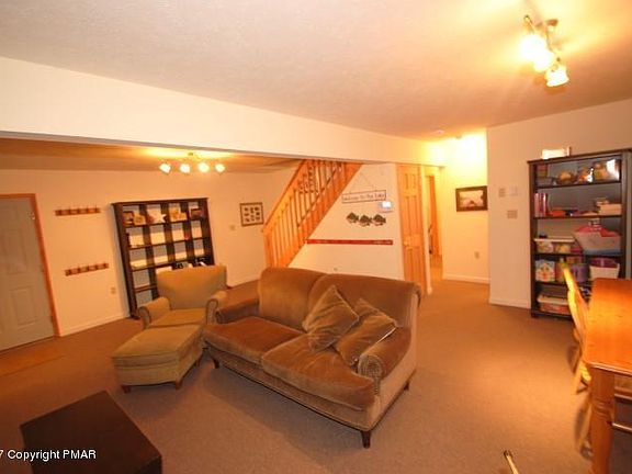 Three story Contemporary Raised Chalet in Locust Lake Village, a Gold Star Community. Featuring 4 bedrooms and 3 FULL bathrooms, this home has enough space for the whole family! Lower level is a complete living area with a family room, laundry room, bedroom, and full bathroom. Main level showcases a heated 4 season sunroom with knotty pine walls and entrance to the decks outside, spacious kitchen with a breakfast bar and pantry, a dining area with sliders to the deck, living room with stone-faced gas fireplace and stunning cathedral ceilings, 2 bedrooms, and a full hall bathroom. Upstairs, is the master bedroom retreat with its own loft space, walk-in closet, and full bathroom. Home features LOTS of storage space with plenty of closets throughout and a utility room on the lower level.