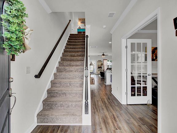 Welcome to Petterson Meadows a gorgeous community near all! Come see this Beautiful home with MANY upgrades. Conveniently located just a short 1.5 miles ride off I-26! Easy access to shopping, Dine over in Nexton, Cane Bay and the historic downtown Summerville. The neighborhood includes walking trails, Children's park & multi-use fields. This Pickens model is a 4 bedroom, 2.5 bath with office & loft. Owner suite downstairs with a huge walk-in closet. Eat in kitchen Island, Powder room, Laundry & Open family room. Upstairs you will find 3 additional bedrooms W/walk-in closets, a 2nd full bathroom & a loft!. Enjoy a generous sized Fenced in backyard, Covered back porch, Brand New SHED, NEWLY INSTALLED PALM TREES! This home is ready for TONS of entertaining & family gatherings! Schedule Now!Upgrades: *Brand New Shed (10' X 12') Anchored to the ground rated at 195mph winds. Build by Tough Sheds out of Columbia, SC *2 additional Palm trees in the back yard installed 5/2024 *Palm Tree in front of house *Gutters installed *Power hooked up to house for generator *Ceiling fans in all bedroom *Living room ceiling fan *Dining room light fixture *Trees planted out back *Large kitchen sink installed with new high end faucet *All bathroom faucets replaced *Owner Suit showerhead replaced *Soft close hinges on all kitchen cabinet doors *Replaced handle hardware on all cabinets in kitchen, bath and laundry room *Extended back patio to include new grill pad *New privacy fence with double doors to allow riding mower to get through *Landscape and metal edging out front *Irrigation installed by the builder.