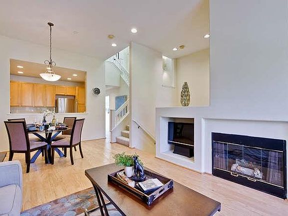 Welcome to this contemporary townhome--Great modern floor plan--Main level with Living room, dining area, kitchen, one bedroom and one full bathroom--Upper level with large two master suites--Spacious living room w/ high ceiling, hardwood flooring and fireplace-- Kitchen w/brand new quartz counter tops and stainless steel appliances--Updated bathrooms with newer tile flooring and shower walls--Attached two car garage w/ extra storage area--inside laundry w/ washer and dryer--Top rated schools--Right next to Costco, Metro Center, Safeway and CVS--Easy access to HWY 101 & 92