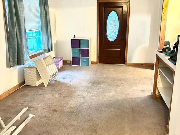 Located on a .14-acre corner lot, this inviting brick home offers a blend of character and potential in a desirable neighborhood. The property features a large front porch, perfect for enjoying the outdoors and greeting neighbors. A one-car detached garage sits at the back of the lot, providing ample storage space and additional driveway parking right behind the home for convenience. Step inside through the side door, which leads directly into the kitchen or basement. The kitchen is complete with a stove, fridge—and flows into the dining area and cozy living room. On the first floor, you'll find a well-appointed full bathroom and one bedroom, offering easy, single-level living options. Upstairs, you'll find a versatile area with built-in storage, ideal for an office or a reading nook, as well as two additional bedrooms. The recently sealed and waterproofed basement presents great potential for additional living space, whether as a rec room or more storage. Outside, the backyard provides a blank canvas with plenty of space for hosting, gardening, or simply relaxing. This home offers a fantastic opportunity to personalize and add your own touches, while enjoying its natural charm and functional layout. Whether you're looking for your first home or a place with room to grow, this property offers the perfect balance of comfort and potential.