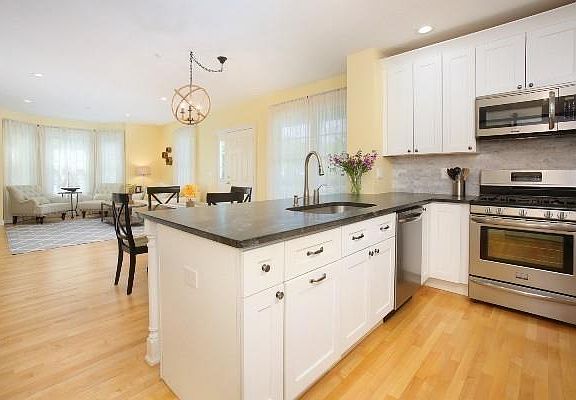 Boston's Uncommon Lifestyle, Chapman's Reach Condominiums at Marina Bay. Totally renovated and Striking Urban Contemporary Design and impeccable finishes!!! Southwest facing corner, duplex with first floor master suite, farmer's porch and attached garage also features large corner living room with fireplace, bay window, separate dining area and magnificent, gourmet kitchen; all with clear maple flooring, The large, sunny master suite boasts walk in and second closet. Elegant, ensuite designer bath with free standing soaking tub, large shower and double, marble top vanity. First floor powder room and laundry offer convenience and stress free entertaining.There is a large bedroom with adjacent full bath on the second floor. Serene and thoughtfully landscaped setting in a premier condominium community provides the lifestyle of a seaside cottage with the advantages and convenience of onsite management. Walk to restaurants, marina and parks. Compelling and Exceptional Value at $629,000!