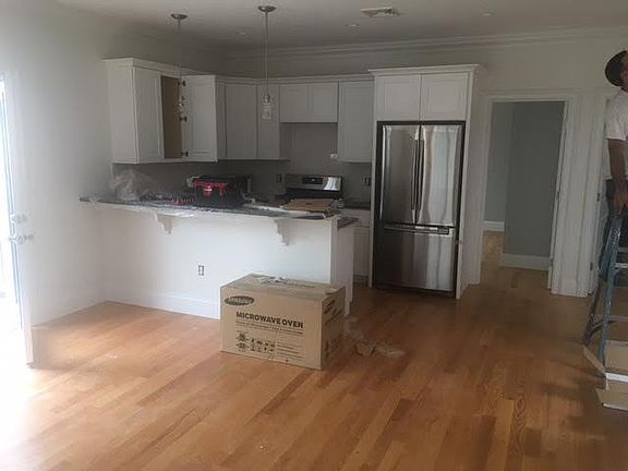 South Boston.... West 2nd St steps to Broadway Red Line T and directly across from "West Square" Apartment Complex... This recent construction top floor two bedroom entire floor apartment in detached two-family feature state-of-the-art renovation and rarely available, attached garage parking. Entire floor layout includes hardwoods throughout, crown molding, recessed lighting, sound-proofing between units, Central Air. Luxurious bath with oversized shower, porcelain tile, quartz counter vanity. Open concept kitchen with granite counters, stainless steel samsung appliances, gas cooking and beautiful cabinetry. Two large bedrooms. Washer/Dryer in Unit. Private Deck. Gas Fireplace. Very large heated garage parking space. No pets. One Month Broker Fee. Available 4/1 for $3500/month. Contact for additional pictures Owner pays water, sewer, and trash removal. Broker fee, 1st and Last months rent required