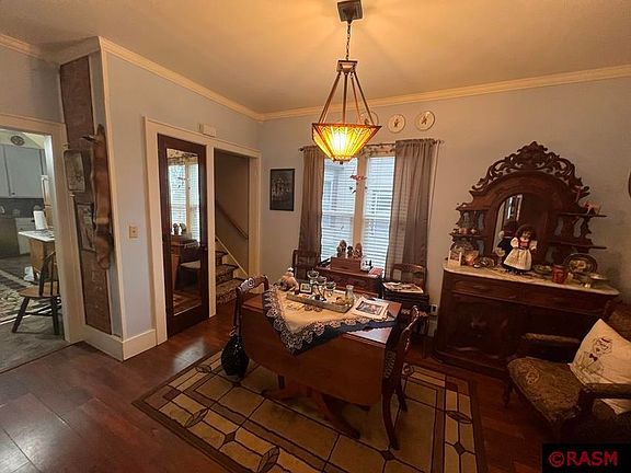 You absolutely need to see this charming 3 bedroom, 2 bath home that has many updates throughout. You are first greeted by the 3-season front porch with original beadboard ceiling and walls, such a great place to relax and enjoy. From there you will find the living and dining rooms, with an unique half wall separating them. The eat-in kitchen is open and spacious and features a beamed ceiling with beadboard. Directly off of the kitchen is a half-bath and back entry with access to the deck. Upstairs you will find the 3 bedrooms and an updated full bath. Plus, extra storage in the attic, which features a pulldown staircase. The basement is unfinished and houses the laundry and offers additional storage. The home has had lots of updates, including flooring on the main level and second floor bathroom, some electrical updates, gas water heater ('22), central air ('18), shingles and exterior of home painted ('18), and newer windows and gutters with helmet guards, plus newer water and sewer lines to the house. Outside spring will provide an array of color in the well-established landscaping around the property, with even more plants blooming as summer progresses. The deck is the perfect spot to enjoy the warmer days with the built-in awning to provide some shade. You will also find a newer single car garage, another single car garage with attic storage and an amazing flex shed with built-in upper bunks with ladder access. This shed offers additional space and so many possibilities for it! Don't miss out on this one!
