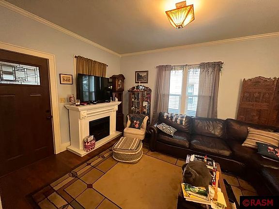 - Description: Laminate flooring (hardwood underneath), paint, exposed brick chimney