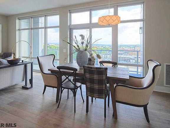 Ascend to a lifestyle unlike any other and discover a distinctive State College experience. Gaze across breathtaking panoramic views, take in spectacular sunsets and unwind under evening stars. Within this one-bedroom, one-and-one-half-bath corner condo, thoughtful interiors unfold walls of windows, rich selections, 10-foot ceilings and luxurious living spaces. At the center of this open floor plan, a stylish European-style kitchen is dressed in Quartz countertops, Bosch SS appliances, custom soft-close cabinets and shimmering pendant lights. Handsome engineered white oak floors flow from the kitchen into generous living and dining areas ready for your embellishment. Imagine time on the covered private terrace overlooking downtown, beautiful PSU campus and Mt. Nittany. Other pleasing amenities include use of rooftop patio, private entrance and parking, Hyatt Health Club.