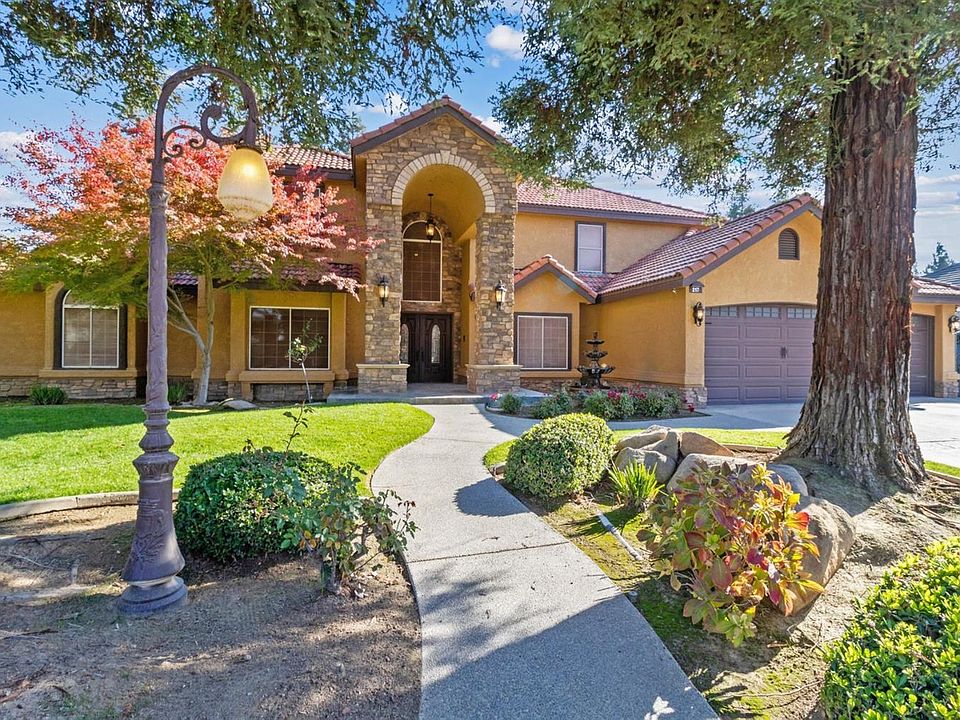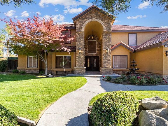 This is a immaculate custom house located in the highly desirable Bluffs neighborhood very close to Riverpark restaurants, entertainment and shopping, Located within the Clovis Unified school district and close proximity to Woodward Park, Country Clubs, and access to HWY 41. This impressive home sits on a 12,720 sf lot w/beautiful mature landscaping. The home has gated RV or boat storage and a 3 Car Garage. Enter through the double Pella doors & immediately feel at home as you're greeted by the Formal Dining/Living Room. The Great Room with vaulted ceilings offers views of the backyard featuring a Pebble Tec (heated) Pool. The spacious kitchen is ideal for entertaining & includes a Thermador side-by-side refrigerator, convection oven, pantry, breakfast bar for six, with adjacent dining Area. The two ground floor bedrooms have large walk-in closets & a full bath. The spacious isolated Master Suite has a gas fireplace, spacious walk-in closet, and bathroom with dual vanity, soaking tub & shower. The second upstairs bedroom includes a bathroom & oversized walk-in closet. This is a must see!