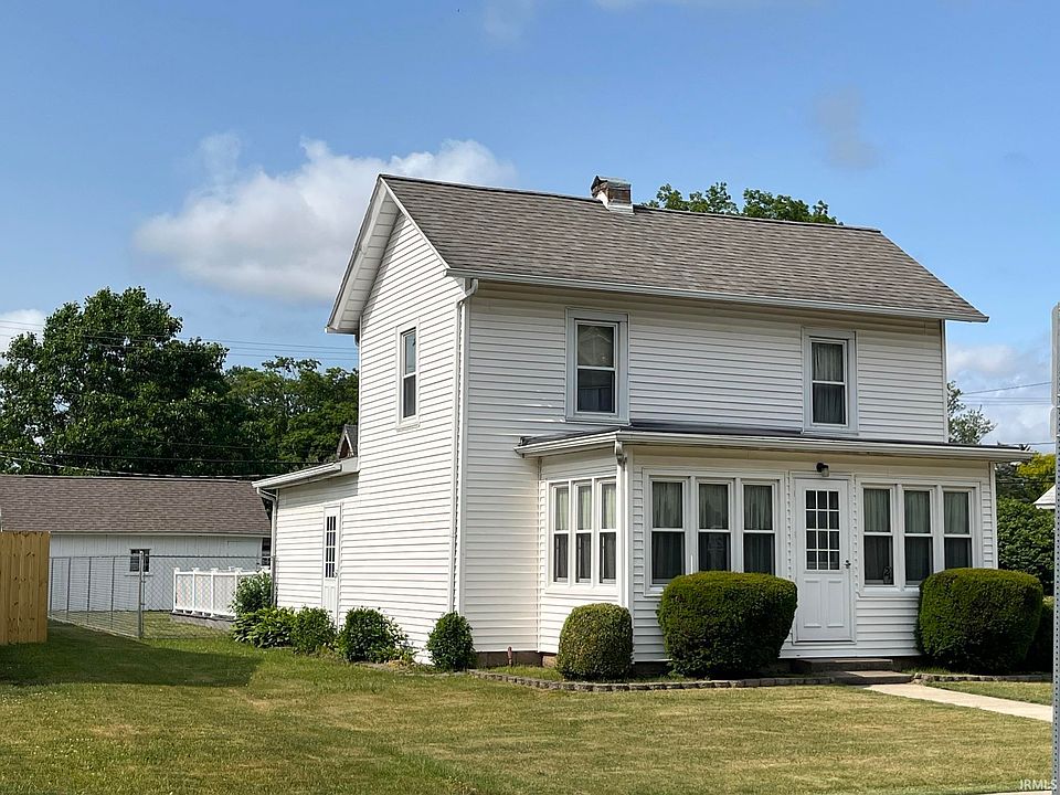 WELCOME to this charming home that is situated in such a CONVENIENT area. This 2 bedroom, 1 den, 1 bath home features original HARDWOOD FLOORS, a formal dining room and main floor laundry. There is a large back deck and a nice full fenced in yard. The windows have all been replaced and the home features a cozy south facing enclosed front porch to enjoy! Garage roof and porch roof are newer. It is centrally located in Town very near the park, Elementary, and Library and is in the New Prairie School District. The detached garage hosts storage space with a vintage wood sliding door. The sellers prefer to sell this Oldie but Goodie as-is and its just waiting for the new owners to add their own new special touches! BONUS... the sellers are providing a 1 Year Home Warranty to the buyers.