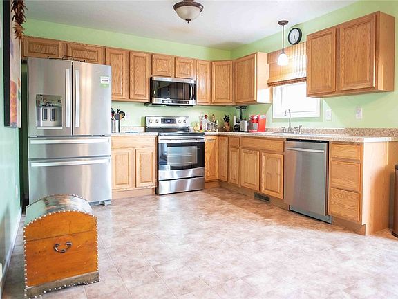 Welcome to this well maintained and ready to move into split entry home with an attached garage. 217 Cross St. features three bedrooms, two full bathrooms, and a convenient half bathroom, perfect for accommodating both family and guests. Step inside to discover a warm and inviting living space that seamlessly transitions into an eat-in kitchen, complete with modern appliances and ample storage. From the kitchen, you can step outside onto a deck with a fenced in backyard. The lower level reveals a finished basement that can serve as a family room, home office, or entertainment hub. All windows have custom blinds. This property is conveniently located two and a half blocks from the elementary school.
