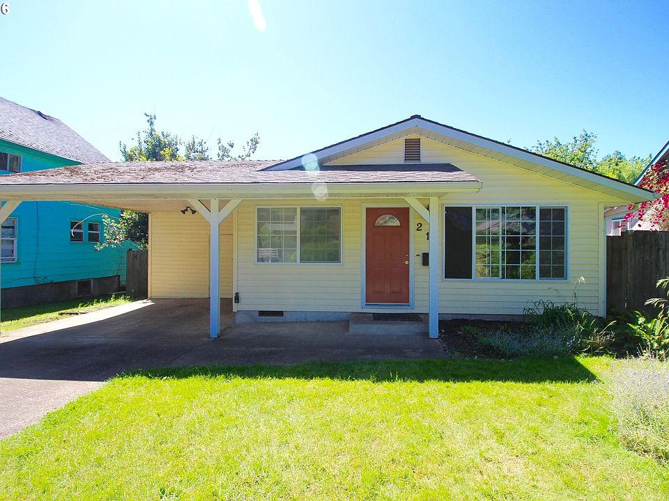 Sweet traditional home in peaceful neighborhood with an open floor plan. Large fully fenced, private backyard with garden beds. Large storage area inside carport. Minutes from U of O and Downtown Eugene with easy access to bike path and bus line. Updated entire inside with new paint and marble counters in kitchen along with new appliances, including new garbage disposal, and new light fixtures in both kitchen, bathroom, bedrooms, and hallway. New vinyl installation of flooring in kitchen and dining room with brand new sink. New 30-year roof installed in 2016. Updated
