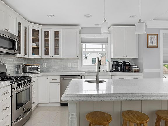 Beautiful Wildwood Crest 5 Bedroom, 3 1/2 Bath townhome that overlooks the back bay. Masterful design blends modern luxury and comfort in this 4 year old home. Private Elevator provides convenient access to all three levels. Decks on 2 levels are perfect to have your morning coffee or evening cocktail and enjoy the bay breeze with magnificent sunsets. Every detail has been crafted to delight the most discriminating buyer. Amenities include Gas Fireplace in living room with beautiful stone surround, vaulted ceiling, custom millwork featuring 6" baseboards and molding throughout, chair rails in selected areas, raised panel interior doors with lever handles and decorator painted walls. The first level consists of a 2 car garage with storage and entrance to your elevator. The second level consists of 4 bedrooms and 2 full baths. One bedroom and bath is en suite with walk in closet. There is also a laundry room on this level and a large covered deck. Take the elevator to the third floor to discover the open and airy main living space with beautiful overhead ambient lighting hidden above the crown molding. There is a Chef's Kitchen with deluxe cabinets and hardware, 8' center island that houses a separate sink, Quartz countertops, Stainless Steel appliances, glass tile backsplash and designer tile flooring. There is also a half bath on this level. The oversized Master Suite with 2 walk in closets and private bath are located on this level. This lovely home has hardwood flooring in LR, DR and hall, wall to wall carpeting in bedrooms. The 3 full baths are finished with marble countertops, frameless glass shower doors, tubs and beautiful designer tile. Enclosed outdoor lighted shower. There is an 80 gallon water heater. Dual zone HVAC. Underground sprinkler system. This is a must see and will not last long in this market. This 2 unit side by side HOA is pet friendly and rentals are not allowed. HOA fees are split on an annual basis and this unit pays $498 for flood and $1686 for liability insurances. You maintain your own landscaping. This home will be unfurnished. Easy to show. Call for an appointment today!!