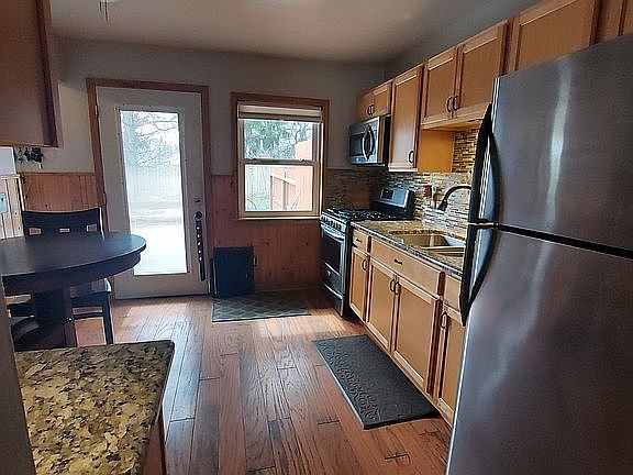 Granite countertops and stainless steel appliances also beautiful decorative tile backsplash and hardwood floors in kitchen and extra large living room, good sized rooms. HUGE 2+ CAR HEATED GARAGE On a quiet street but 2 minute walk from downtown Lowell and restaurants and entertainment. 2 bedroom, 1 bath home with all the upgrades. Nice deck out the back door to enjoy those summer evenings. Large 12x16 shed. And a spectacular heated 22x24 garage with work shop and attic for extra storage as well! Washer and dryer in unit as well. This home is a 2 minute walk to downtown and a 30 second walk to the nearby park. Tenant responsible for all utilities, no smoking
