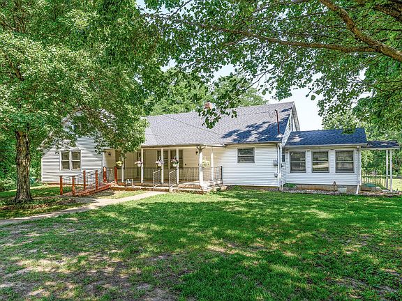 PRICE REDUCTION to get your attention! Escape the hustle and bustle of city life and immerse yourself in the tranquil surroundings of Walnut Grove. This charming farmhouse is nestled in town on just under 2 acres and is only a stone's throw away from Stockton Lake, Bolivar, Ash Grove, Willard, Springfield & other surrounding communities. The house offers comfortable living. The large covered Front Porch includes a separate wheelchair accessible ramp. The spacious Living Room comes complete with a fireplace featuring a thermostatically controlled pellet stove with blower, perfect to cozy up to on a chilly evening. The Formal Dining Room and Kitchen, with plenty of cabinets, including a built-in sit-down eating table, are ideal for hosting guests or enjoying a family meal. There are 2 Main Floor Bedrooms PLUS a conveniently located Office Nook at the base of the staircase. Also on the Main Floor are 2 Full Baths. One has a tub/shower combo while the other one is equipped with a therapeutic jetted walk-in tub. Head upstairs to discover 2 additional Bedrooms and a large unfinished bonus room just waiting for your personal touch. Just off the Kitchen, relax and enjoy the enclosed Sunroom with 8 windows. This property boasts ample storage space scattered throughout the inside PLUS an amazing Basement with outside access that houses the High-Efficiency Furnace, new Water Heater, is plumbed with a sink and a toilet (& a shower at one time) and has ample space to dedicate to hobbies and other interests that you love to do. And if that's not enough, a few short steps away is the detached 3-car Garage/Shop with attached Lean-to on the back. This Garage/Shop features a concrete floor, 3 automatic door openers, 110 and 220 for all your tool needs. But wait, there's more. How does a large Equipment Building and 2 additional Outbuildings sound? Well don't miss out on this incredible opportunity to make this serene farmhouse your own! CALL TODAY!