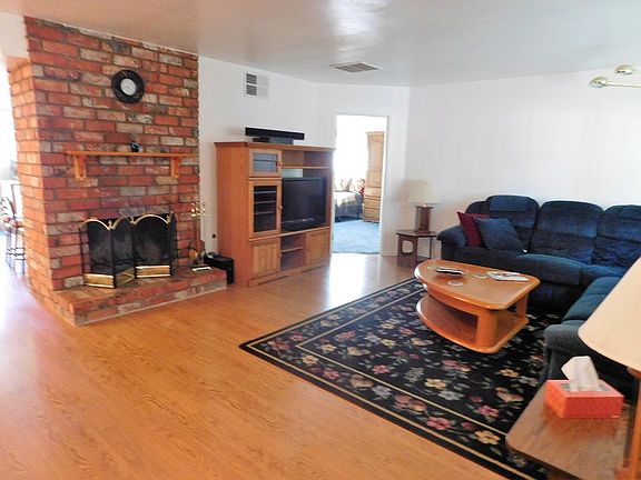 Gorgeous landscaped front yard has brick accents & extended drive way for extra parking.Dual pane windows installed in 2000.Security insulated entry double drs open to large living area w/Wilsonart wood laminate & brick fireplace w/gas lighter.To the right is the huge master suite featuring new paint,carpet:walkin closet.Security dr & screen open to back patio.Mstr bath has new vinyl flooring & faucets;stall shower.Back to the entry:laminate flooring continues thru the dining rm & into kitchen:2015: corian dining peninsula & counters,cabinets restained,sink & gd replaced.Corner pantry has light! Sealed burner range & dw.Security dr & screen to back patio.Down the hall are 2 carpeted guest bedrms & one w/laminate flooring:a;; 3 have ceiling fans.Guest bath has tile floors, tub,new sink & mirror.Laundry rm w/sink built into extra lge. garage.'16insulated garage dr &dual pane window! Leased solar installed '12.Shady backyard has new fencing on west & south sides. Banks roses on east side. Lots of grass & 2 big shade trees to enjoy from latticed patio:even view of the mts. RV pad on east side thru double gate. Shed. Sears Carrier Infinity a/c '07. Security system monitored by Vivent