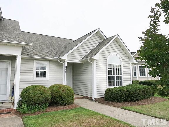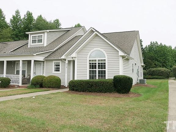 Highly sought after end-unit ranch townhome on cul-de-sac lot in Moss Creek w/covered Entry/Patio/StorageRm/private backyard/rear alley double parking pad backs to a natural area. Easy access to Johnston HealthPlex/Hwy 42/Hwy 70/I-40! Wood-laminate floors throughout, spacious rms, vaulted ceilings, open floorplan. Vaulted LivRm w/gas log FP open to spacious DinRm; KIT w/tall white cabinets/eat-at bar; lg vaulted MBR w/WIC & priv Bath w/dbl sinks; vaulted BR2 has adjacent full Bath - great for roommates!