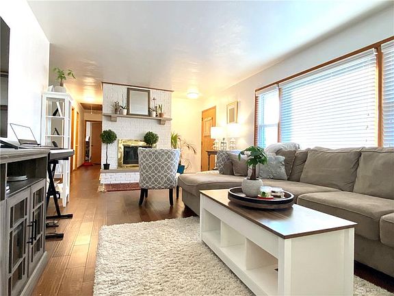 Spacious 3 bedroom 2 bathroom move-in ready home! Eat-in kitchen with large family room and wood-burning fireplace. Lovely flower garden blooms in the spring/summer, plus a 20x14 enclosed patio perfect for hosting and nice size lawn. Updated exterior and interior paint including kitchen cabinets, air condenser 2021, updated master bath, 200 amp service, water heater 2019, newer floors, and vinyl windows. 1st level washer dryer and 2 car garage. The large basement includes washer/dryer hookup and is plumbed for a 3rd full bath. Sump pump and back-up check valve installed 2020. Conveniently located close to shopping and restaurants!