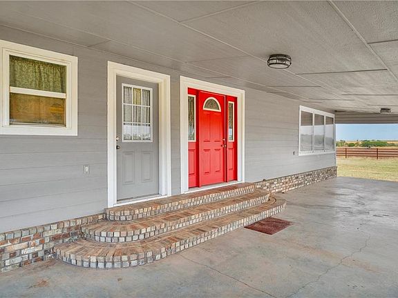 This home sets in a quiet western Oklahoma town with over 2300 square feet setting on just over 2 acres! This home is has a large open living area with large windows to look out of. Nice wood burning fire place with blower. Large carport/front porch, pipe fence, large covered wood deck to relax and have a quiet evening and take in a picturesque western Oklahoma sunset! A safe room is included off the master bedroom. 3 bedrooms, 3 baths, laundry room, setting room, and dining area. This is country living at its best!