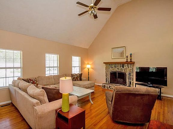 Tucked away from the hustle and bustle but just minutes away from everything. This home is loaded with character! You'll love the charming rocking chair front porch overlooking a huge 1.2 acre lot dappled with colorful indigenous flowering plants and trees. The family room is the heart of the home featuring amazing hardwood floors, soaring ceilings, wood burning fireplace, ornate mantel and tons of windows that flood the room with natural light. The kitchen boasts ample cabinet and counter space and a large arched pass-through opening. A split bedroom floor plan offers three generous sized bedrooms served by a spacious guest bath and a tranquil owner's oasis with walk-in closets and en suite dual vanity bath. Extras include: stacked stone fireplace and chimney, separate laundry, huge pantry, sun room, deck, outbuildings, basketball goal and wonderful outdoor living spaces. Conveniently located in a sidewalk neighborhood close to shopping, schools, restaurants and churches.