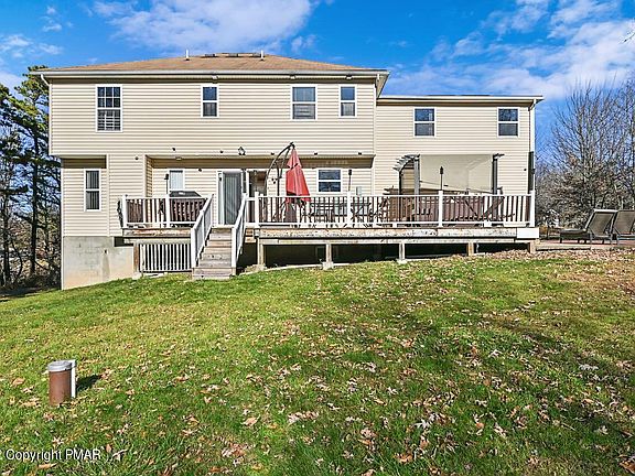 Beautiful Colonial Home has 5 Bedrooms, 3 1/2 Bath, 2 Car Garage. Deck, Pergola, Hot Tub, Fire Pit Area and More. NO HOA FEES, Currently used as SHORT-TERM RENTAL. Home Comes with Everything Furniture to Silverware. Just Bring your Toothbrush Move in, Use as Vacation Rental or Your Own Vacation Home. Home Boast Hardwood Flooring throughout, 2 Story Foyer, Modern Kitchen with Gray Shaker Cabinet, Quartz Countertops, Tile Back Splash, Stainless Steel Appliances and Range Hood, Family Room with Reclaimed Wood Fireplace feature, Formal Livingroom and Dining Room. Upstairs find 3 bedrooms and Massive Master Suite. Finished Basement with Gameroom, 5th Bedroom and Full Bath. Near, Camel Back Ski Resort, Aquatopia, Mount Airy Casino, Kalahari, The Crossings Outlet Shopping, Restaurants and More