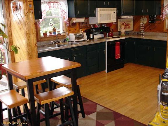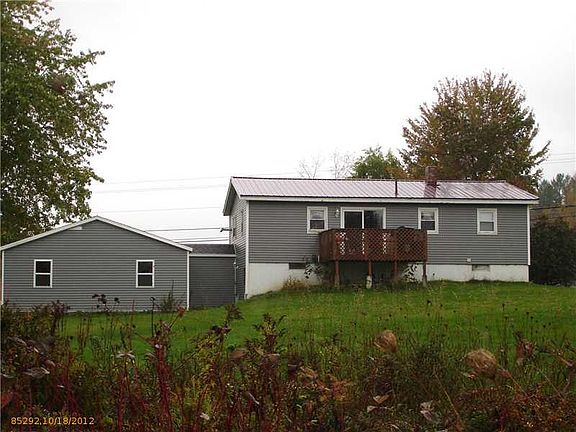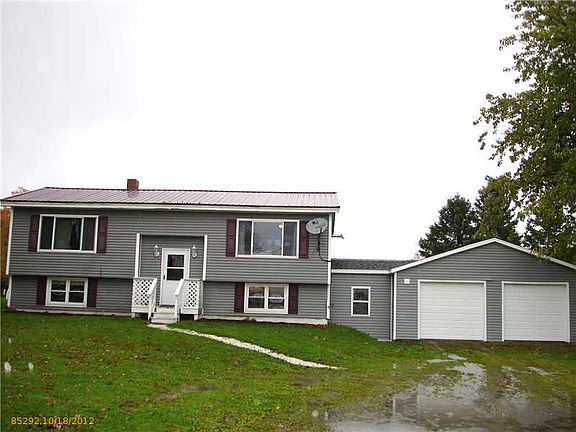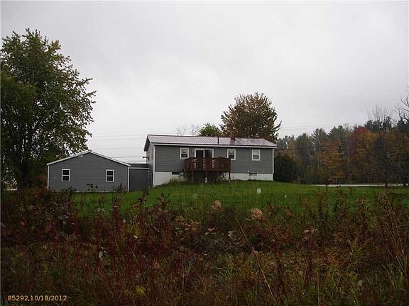 Raised ranch with so much potential. Large living room w/pellet stove, kitchen with ample cupboards and sliding doors to back deck. 2 bedrooms, 1 bath,new 2-car garage situated on a .69 acre lot.