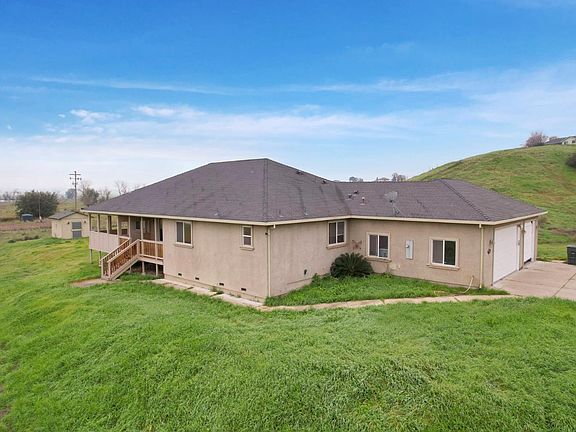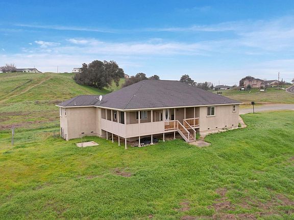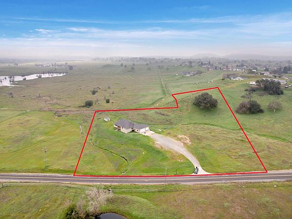 Experience the perfect blend of space, comfort, and country charm in the sought-after Lake Camanche Village neighborhood just minutes from boating, fishing, and outdoor fun at beautiful Lake Camanche! This move-in ready, ranch-style retreat sits on nearly 5 acres and features 3 impressively large bedrooms, plus a flexible 4th bedroom or home office. Step inside to soaring ceilings, brand new luxury vinyl plank flooring, and a light-filled kitchen with recently painted cabinets, a pantry closet for extra storage, a large center island with sink and bar seating- perfect for entertaining or casual family meals. The spacious primary suite is a private haven, offering two walk-in closets and a spa-like bathroom with double sinks, a soaking tub, and a separate shower stall. Two additional bedrooms are connected by an oversized Jack & Jill bathroom. Enjoy peaceful mornings and golden hour sunsets from the charming wraparound front porch, or unwind on the private covered back patio. A 3-car garage provides plenty of storage, and there's ample space to park your RV, 5th wheel, boat, or other recreational vehicles. Peaceful, private, expansive, and full of potential... this is the lifestyle you've been dreaming of!
