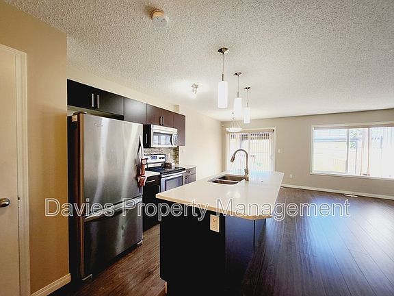 Charming 3-Bedroom Half Duplex in Summerside, Edmonton South Located in the sought-after community of Summerside, this freshly painted 2-storey half duplex offers both comfort and convenience. Featuring 3 spacious bedrooms, 2.5 baths, and a single attached garage, this home is ideal for families or professionals looking for space and style. The main floor boasts beautiful hardwood flooring and a large living room complete with a cozy gas fireplace, perfect for relaxing evenings. The kitchen is well-designed with ample countertop and cabinet space, along with a large window that invites plenty of natural light, creating a bright and airy atmosphere. A convenient half bath is also located on the main floor for guests. Step outside to a fully landscaped and fenced backyard, perfect for summertime enjoyment. The large deck is ideal for outdoor dining and easy to maintain. Upstairs, you'll find three generously sized bedrooms. The primary bedroom can easily accommodate a king-size bed and features a large walk-in closet and an ensuite bathroom, offering privacy and comfort. The additional two bedrooms are also spacious and located near the main 4-piece bathroom. For added convenience, the washer and dryer are located on the upper floor, making laundry tasks easier. The unfinished basement offers a large open space, perfect for additional storage or the flexibility to create a home gym or entertainment area to suit your lifestyle. Living in Summerside provides access to an array of amenities, including parks, schools, and shopping, all within close proximity. Residents also enjoy easy access to major roadways, making commuting simple and convenient. Don't miss the opportunity to call this beautiful property your home. Contact us today to schedule a viewing!