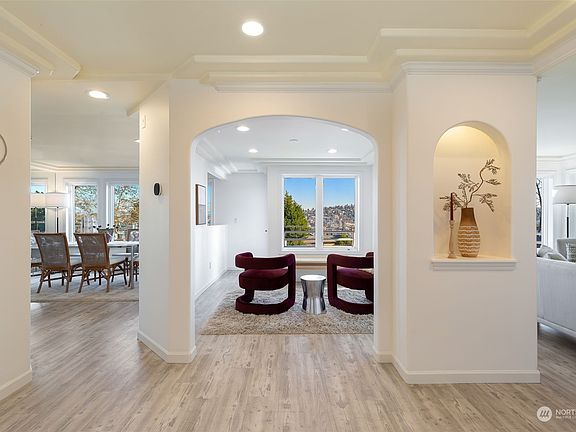 Exceptional views & prime location ! Don't miss this stunning spacious 2-story 3bd/2.5ba 1,714 sq ft condo in a boutique 3-unit bldg. Panoramic views of Lk Union, The Cascades & Seattle. Thoughtful floor plan, open kitchen, expansive dining area, view office nook, powder rm & large liv rm w/ gas f/p. Huge picture windows throughout + French doors open to private balconies on each level with stunning views. Primary suite offers luxurious ensuite bath, walk-in closet + balcony. 2 more large bedrooms, full bath, laundry rm + abundant closet storage. Private stairs to Dexter Ave N offer easy access to transit, walk & bike lane - short trip to S Lk Union, Fremont & Ballard. Pet friendly, 2 secure parking spaces. Bright clean & move in ready!