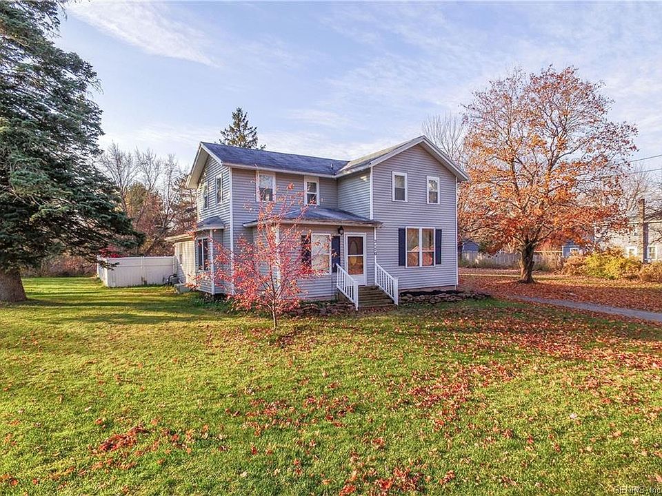 YOU'RE SURE TO BE SURPRISED! This 19th CENTURY FARMHOUSE has been UPDATED WITH TODAYS AMENITIES! This winter, you can EASILY ENTERTAIN inside w/the OPEN & SPACIOUS floor plan! And when the weather gets warm, take the party out back to the PRIVATE FENCED-IN PATIO w/IN-GROUND POOL, PERGOLA! UPDATED EAT-IN KITCHEN opens to Living Room w/BEAUTIFUL STONE FIREPLACE!(Electric). Original ARCHWAYS!. Generous sized Foyer. 1st FLOOR LAUNDRY & 1st FLOOR MASTER SUITE w/Sliding glass door to the Patio. Upstairs has 3 Bedrooms, 2 w/VAULTED CEILINGS! There also are some ORIGINAL PLANK HARDWOODS hiding under the carpeting-upstairs & down! **ALL NEWER: PVC plumbing, PEX water lines, Vinyl Windows, Roof, Furnace & Central Air! **All this on a 1.46 ACRE LOT! DON'T WAIT!