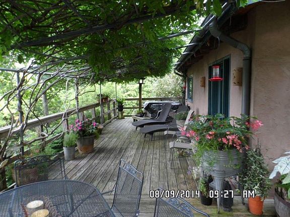 Rustic hide-Away nestled on 12 private acres, A Cooks Kitchen commercial appliances, log bean ceilings Southwestern feel throughout. Stone fireplace, wrap-around deck. In-Ground Pool.