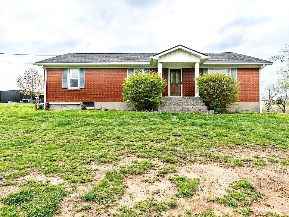 Here's a beautiful brick ranch perched in a rural area of Nelson County and offering panoramic views of scenic farmland. Kicking the tour off is the spacious living room surrounded by sun-enticing windows and accentuated by the tetrad of recessed lights that glow on the classic hardwood floor. Flowing from the living room is the kitchen equipped with rustic cabinetry, a good amount of counter space, and a handy pantry closet. Connecting to the kitchen is an intimate dining room displaying more of that rustic charm! Situated on its own wing of the home are 3 generously sized bedrooms all sporting more of that gorgeous hardwood and accompanied by a large full bathroom. The primary bedroom is furnished with his/her closets and connects to another full bathroom that also leads you into the den. The den is a cozy area that is a great spot to relax or entertain. It is laid with a soothing woodgrain floor and filled with charming touches from the exposed brick wall to the pair of French doors that open to the rear patio. Rounding out this area is a sizable utility room and entrance to the attached 2-car garage. The tour continues to the unfinished basement offering lots of potential to add rooms and entertainment plus plenty of storage and a place to stay during inclement weather. Outside you will love breathing in that fresh country air as you work on farm activities which is supplemented by the 24 X 34 barn hooked up with water & electric and the 15 X 30 utility shed wired with electric. Then you'll enjoy being able to unwind on the rear patio after a long day's work to catch one of those stunning Kentucky sunsets or listen to the relaxing sounds of running water from the creek that streams next to the property. This is just the place to settle down and call home and call MIKE SPALDING to make this house your home today!