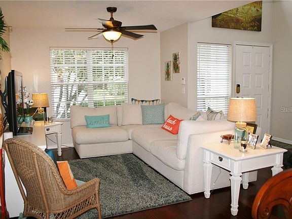 Beautiful Town home nestled in peaceful, private setting! 2 Bedroom, 2 1/2 Bath with screen enclosed, tiled lanai! Living/ dining room combination features cherry wood flooring and upgraded light fixture and ceiling fan! Stunning kitchen features cherry wood cabinetry with granite countertops and stainless steel appliances! All appliances convey! Inside washer and dryer! Bedrooms upstairs have neutral carpeting! Walk In Closet! Community pool just steps away! Great location! Near shopping, schools, and restaurants! Easy commute to the beach!