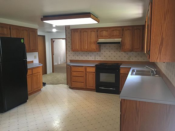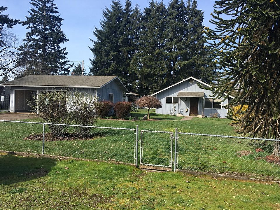 3 bedroom, 1 bath, large kitchen with dishwasher, fridge, stove, disposal and entire wall of floor to ceiling cabinets. Inside utilities, fenced yard with detached oversized 2 car garage. On large lot. Pets ok with deposit