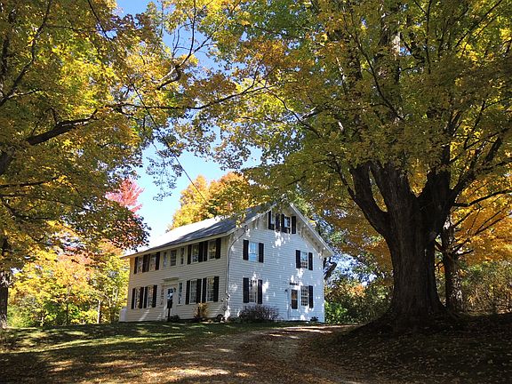 Unique 1810 four bedroom Colonial has been meticulously maintained to preserve its history and character. This scarcely altered home on private drive is surrounded by 99+ acres of fertile fields and a working, stewardship forest with high quality woods due for harvesting (estimated value of $137,000). This proud home features hand-painted Greek Revival frescos in the central hall, wide pine flooring, much original hardware, modified Palladian window and a Colonial floor plan with front living room/parlor and formal dining room. Updated kitchen overlooks family room, small den, side door and back stairs to bedrooms. Full attic and a full basement with unusual cobblestone floor. Solid barn on concrete has hay storage. Newer detached garage. Two potential building sites on un-conserved acreage, VT Land Trust holds easement on forest that borders Green Mountain Long Trail. Property in Land Use. Near hospital, airport, and down hill skiing. Biking, jogging and wild life haven.