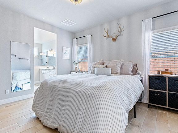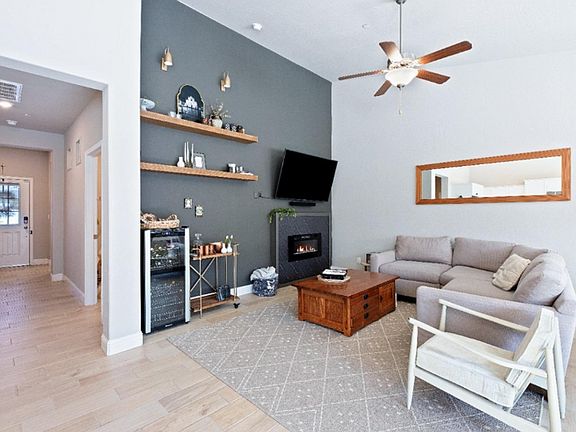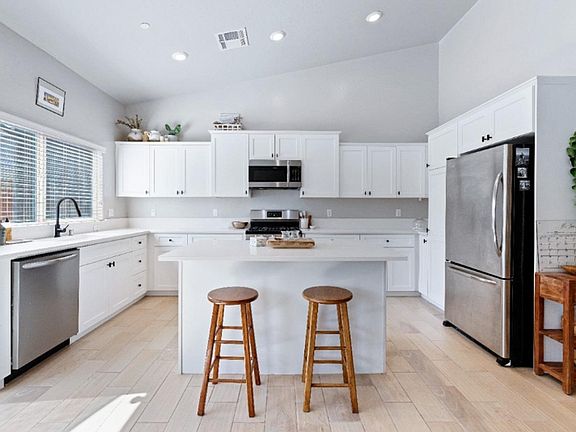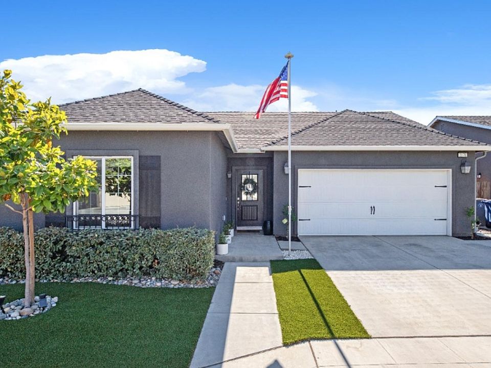 Move in Bonus $500. 2 Bed/ 2 bath. Energy efficient home with beautiful wood tile floors throughout. Spacious Great room with high ceilings, ceiling fan and windows for great natural light. Open kitchen has center island/ breakfast bar, quartz countertops and ample storage cabinets. Stainless appliances include dishwasher, gas stove, built in microwave, and refrigerator. Main bedroom has en-suite with a custom built in closet, walk in shower and quartz countertop vanity with dual sinks. Two additional bedrooms and guest bathroom with tub/ shower combo. Laundry room has washer / dryer and linen closet. Attached 2 car garage with storage shelves. Backyard has cement area and artificial turf along with a built in raised garden bed and bocce ball court for entertainment. Both backyard and front yard have water efficient artificial turf for easy maintenance. Credit score above 650 required. No pets. No smoking. Tenant in charge of yard care. Solar panels included. Tenant pays for PG&E, Tru Up and Clovis Utilities. Clovis schools, near Clovis East Educational Center. Renter's insurance is required. DRE# 01901101. All information is deemed reliable but not guaranteed and is subject to change.