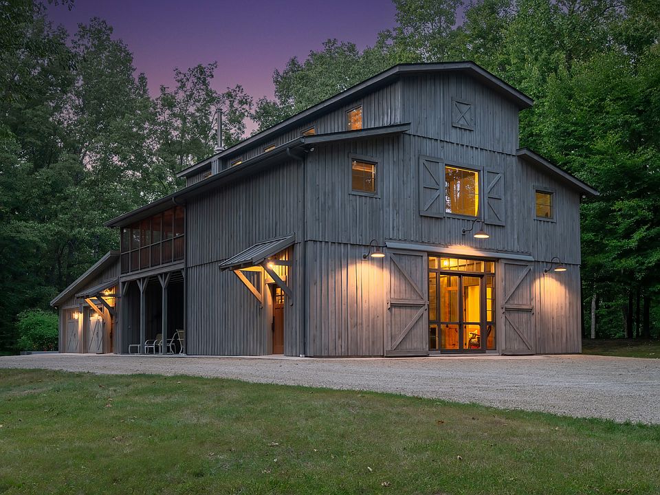 Nestled on 70 lush, mostly wooded acres, this private retreat offers the tranquility you've been seeking. Access the property through a private gate & follow the quarter-mile driveway to the main house, built in 2009 by a well-regarded local builder & thoughtfully updated by architect Steve Miller. The home is filled with natural light, featuring high ceilings, expansive Andersen windows, & French doors that lead to a screened porch with a custom daybed, perfect for relaxing afternoons. A grand glass entry welcomes you into the home, where you'll find a professionally designed kitchen & main bath by Kitchens by Design, a quiet office with a queen Murphy bed for overnight guests, & a spacious craft/work room for hobbies. Entertain in the large dining area or unwind by the Jotul wood stove during winter. The main level also includes a second full bath with a walk-in shower, & a storage room. The attached four-car conditioned garage provides ample space for vehicles, equipment, and storage. A whole-house Generac generator ensures comfort during power outages. The property features over three miles of ATV & nature trails for hunting, fishing, birdwatching, hiking, & more. It offers easy access to a beautiful 3-acre stocked lake, ideal for swimming, kayaking, & fishing. A cozy guest house, built in 2020, overlooks the lake with its own screened porch cantilevering over the water, a fire pit, and a walkway to a large covered dock. The guest house includes a Murphy bed, loft for sleeping, Jotul wood stove, Pella windows & doors, a kitchenette, and a full bath. Both homes were constructed with energy efficiency in mind, featuring 6-inch walls & high-grade insulation. Gigabit internet is available at both locations. The electrified dock is perfect for fishing and boating. Situated just 45 minutes from I-465, this property is ideal for hosting weddings, company retreats, or family gatherings. Embrace a lifestyle of serenity & adventure on this remarkable estate.