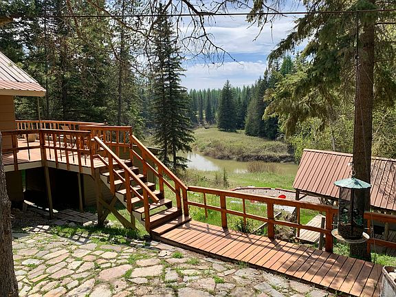 1250 square foot 3 bed, 2 bath home plus 1250 sq feet partially unfinished basement including two additional bedrooms. Sits on 315 feet of Stillwater River in Whitefish, Montana. Detached 984 sq.ft. garage/shop building and a RV storage building. Riverside dining/party area. Root cellar. Heat pump with a/c. Decks with river views. Circular driveway. Open floor plan. New appliances. Borders state land and Whitefish Trail. Will work with buyers agent