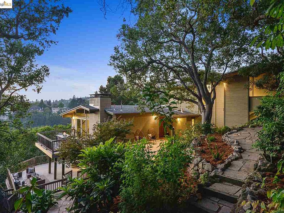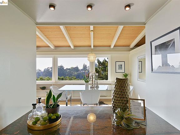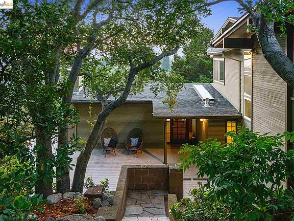 Spacious mid-century with terraced grounds and much privacy. Bay views inside and out and from all three levels of the home, including master! Views include bay, cities, bridges and canyon. Living room, dining room, and kitchen space flooded with natural light. Nice updates. Master features include huge walk-in closet and Japanese soaking tub. Harmonious blend of cement and slate floors throughout. Ample storage in every space imaginable and 2 workshops. Interior access from 2-car garage. Potential in-law or au pair on lower floor. Great for multi-generational families. Flexible floor plan offer lots of possibilities and room for creativity! Close to schools, regional parks, business districts, and highways. Open August 25 & 26 and September 1 & 2, 1:30-4PM