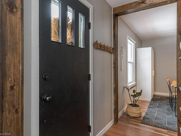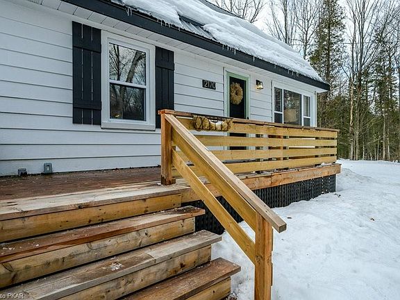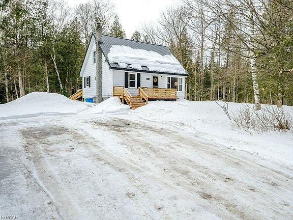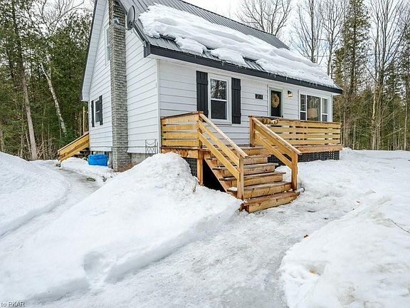 This charming home, deceiving in size, is tucked away on a private treed lot just steps from Stoney Lake. A picture perfect dwelling inside and out, this place has so much to offer. The main floor has an open, bright kitchen with butcher block counters and a live-edge wood breakfast bar. From the kitchen you can walk-out to the back deck and enjoy a peaceful morning coffee while overlooking the forest right in your backyard. The living room is spacious with lots of natural light from the large corner windows. The open living space could also accommodate a dining area should the formal dining room be used as a main floor bedroom. There are a number of different layout options for the main floor. Upstairs are three bedrooms and downstairs has a finished family room. There is ample room for kids to play! The metal roof was installed in 2017, there are updated windows and clean, modern finishes. This is a lovely home from top to bottom on a beautiful piece of land - a must see!
