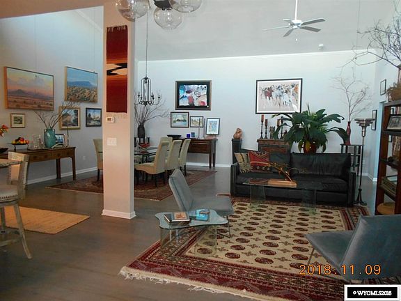 See the incredible views of Rawlins and Elk Mountain from the deck of this beautiful custom home on .81 acre. This home is very large and has 4458 square feet, 4 bedrooms, 3.5 bathrooms, and is fully remodeled. You'll love the exceptionally high ceilings and Clerstory windows. Home has 2 fireplaces, office, huge wrap-around deck, new furnace, roof, and air conditioning. Flooring is new.