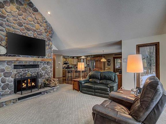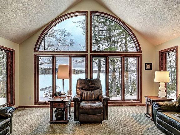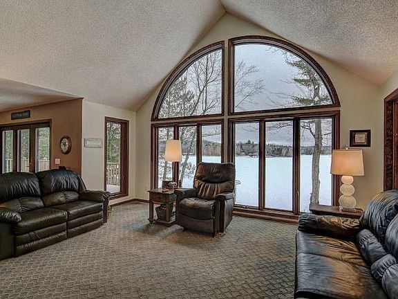 ANVIL LAKE HOME - Mint condition 3 bedroom, 3 full bath home with 100' of sand frontage on Anvil Lake. Open concept living with lakeside wall of windows throughout. Large living room boasts a wood burning field stone fireplace. Kitchen includes granite countertops and ss appliances. The three season room is a must for relaxing in the summer. Lower level features family room with wood burner, two bedrooms and full bath. Two car attached garage and two car detached garage lend to plenty of storage. Maintenance free deck, new pier and asphalt driveway round out this must see home!