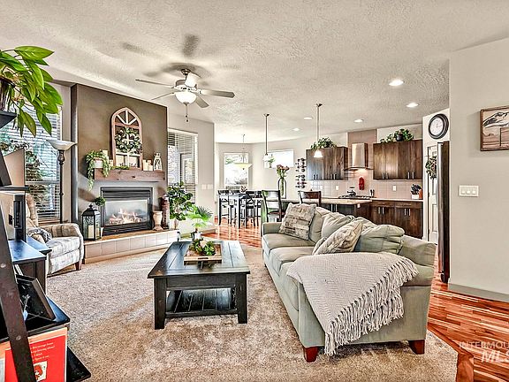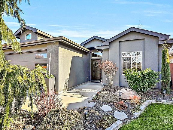 Charming single level home centrally located and situated on a quiet cul de sac with east facing backyard close to the greenbelt, river, shopping, entertainment, I-84 and the airport. Inside you'll find an open floor plan, hardwood flooring, cozy gas fireplace and quality interior finishes. The kitchen here is definitely the true heart of the home and features granite countertops, ss appliances, sleek range hood, coffee bar and large pantry. The primary bedroom retreat includes dual vanities, walk-in shower and soaking tub with a spacious walk-in closet just off the bathroom. Outside, you'll love the curb appeal with an upgraded garage door and landscaped entry. In the back, enjoy your beautifully landscaped peaceful and private oasis, perfect for entertaining or a quiet afternoon next to the tranquil fountain. Just off the patio is a stone planter for growing herbs to garnish your favorite drink or entree and don't miss Mindy's magical fairy garden path on the south side of the home!